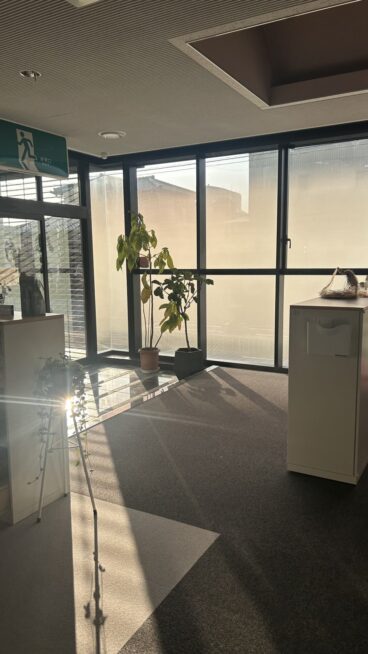 朝、まだ誰もいないオフィスの入り口に光が差し込んでいて、その風景を見たとき「ここで朝ヨガをしたら気持ちいいだろうな~」なんて。