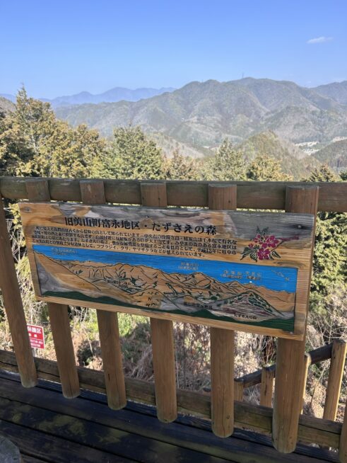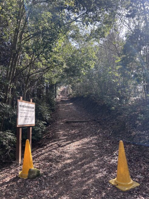 登山口にはトイレや駐車場が完備され、地元の皆さんの温かさを感じる「竹製の杖」も用意されていました。 ふかふかの落ち葉を踏みしめながら歩く山道は、とても心地よいものです。途中、パラグライダーの離陸場や整備された階段もありましたが、この日は少し軽装だったこともあり、無理をせず展望台を目指すことにしました。